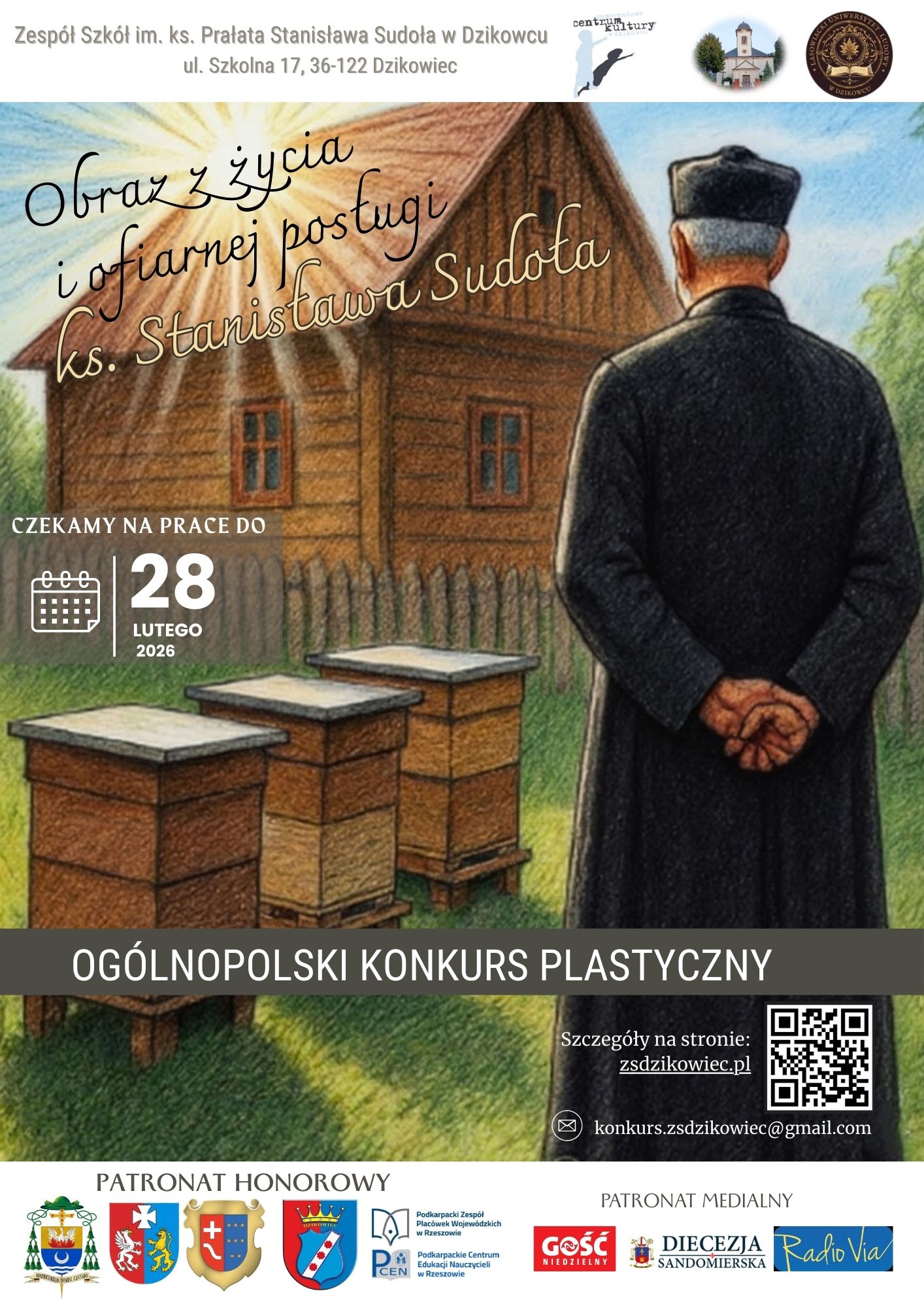 Prace można nadsyłać do 28 lutego 2026 r. Wyniki zostaną ogłoszone 16 marca na stronie szkoły, a uroczyste wręczenie nagród i otwarcie wystawy odbędzie się 19 marca w Samorządowym Centrum Kultury w Dzikowcu.